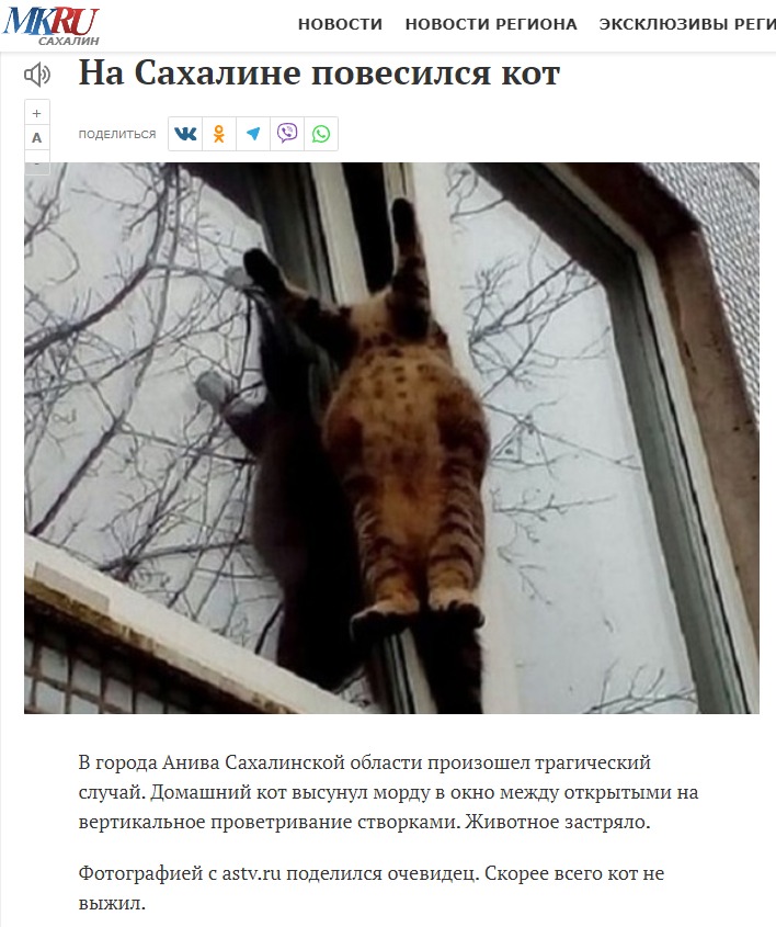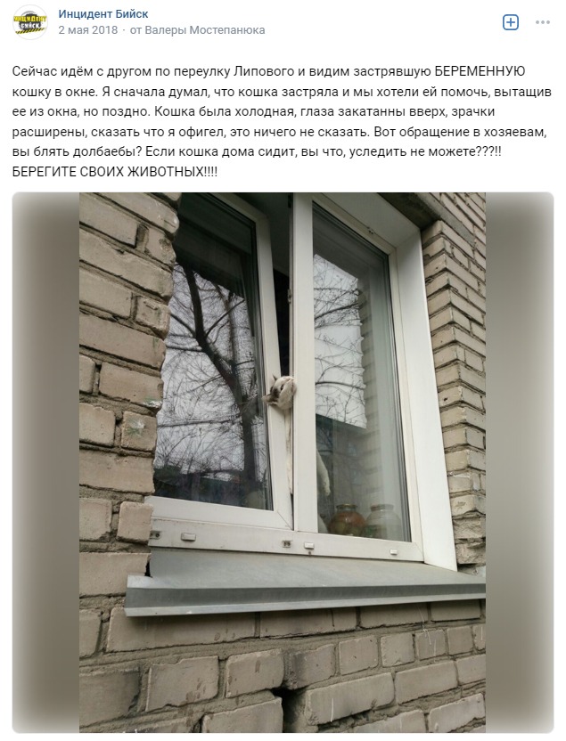 Но в дикой природе нет многоэтажных домов, пластиковых, алюминиевых и иных окон с идеально гладкими лицевыми поверхностями, стальных и бетонных парапетов, перил и полированных стекол, за которые, даже самыми острыми когтями, не зацепиться. Поэтому генетически у кошек и нет боязни вышеуказанных объектов, и именно поэтому они таят в себе для них огромную опасность.