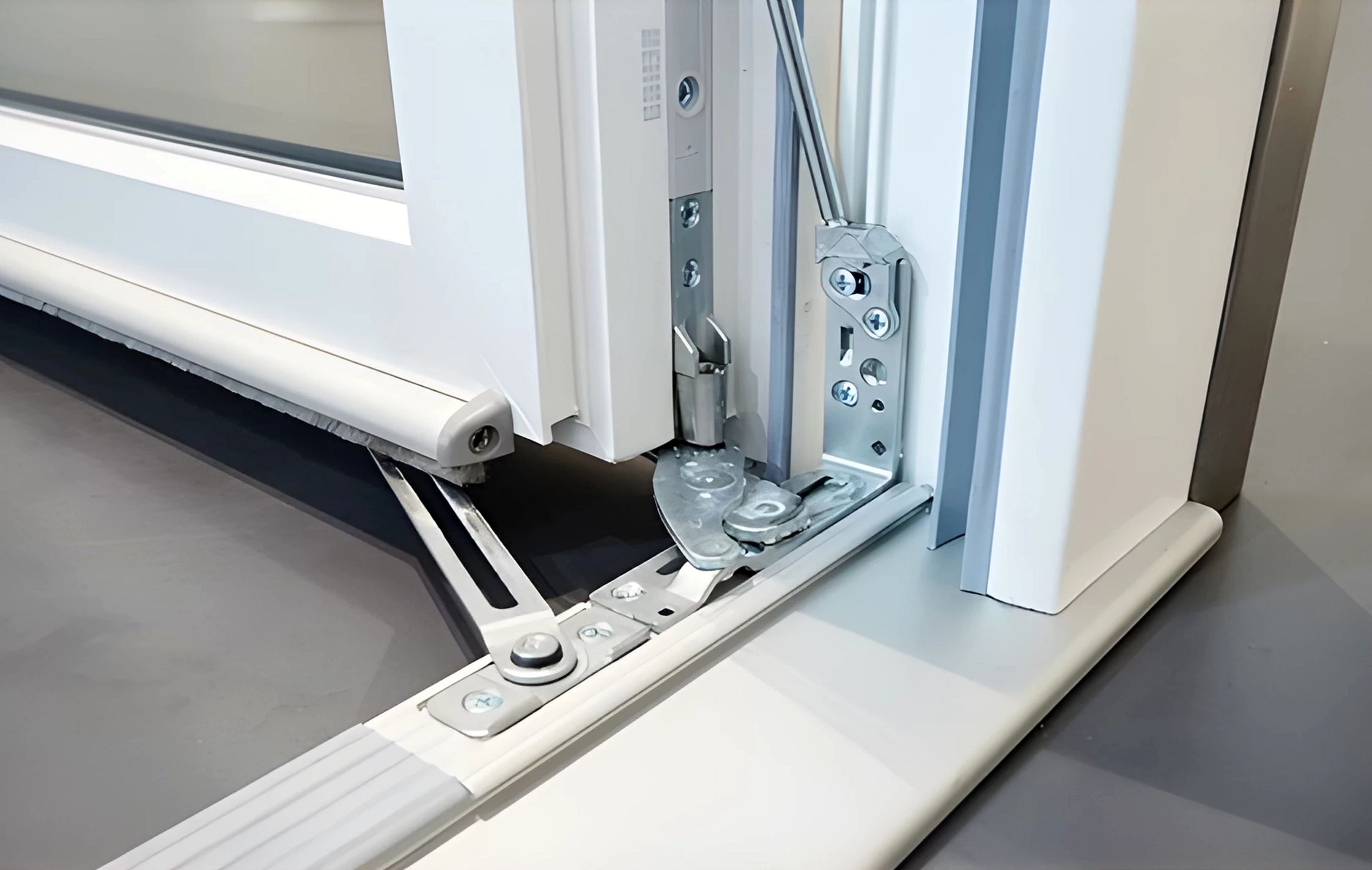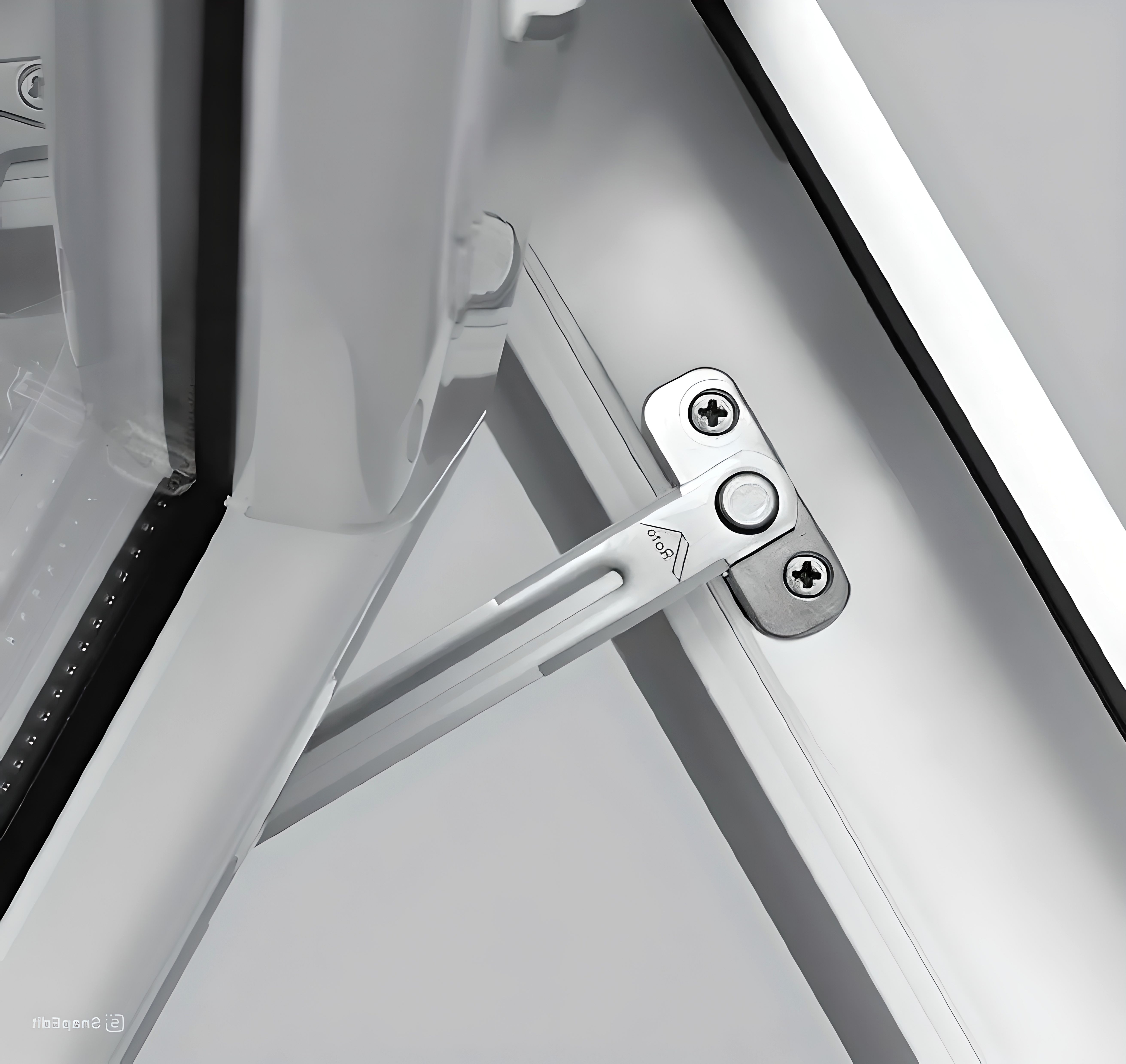 Стопорные ножницы имеют не только функцию удержания открытой створки в определенном положении, но и ограничивают предельный угол ее открытия, тем самым не допуская ситуации, когда створка порывом ветра или вследствие небрежной эксплуатации будет повреждена об оконный откос, или откос будет поврежден створкой. Особенно полезна эта функция будет владельцам кассетных штор. При этом ограничитель открывания створки от компании Roto содержит дополнительно пружинный компенсатор, который плавно передает нагрузку от тяги на створку, исключая удары соответствующие им хлопки.